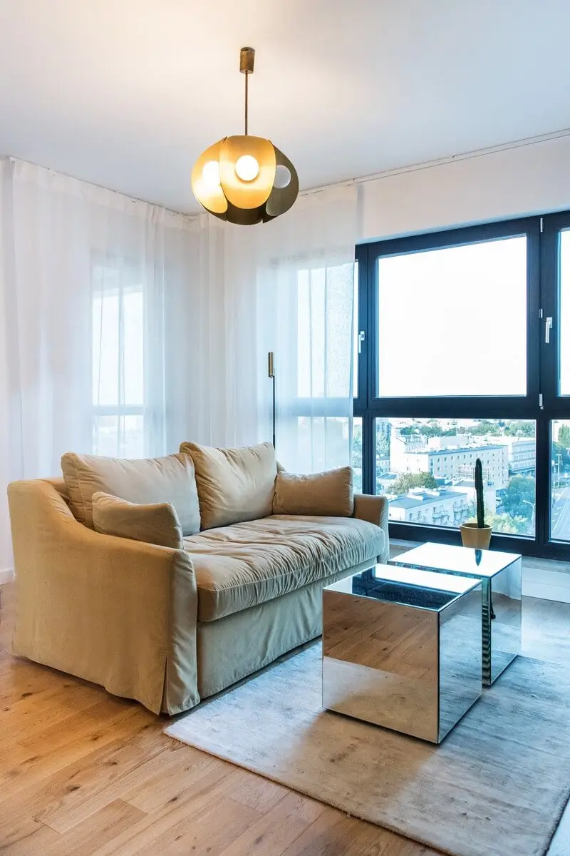 W łazience i korytarzu zastosowaliśmy eleganckie płytki, tworząc nie tylko praktyczne przestrzenie, ale także nadając im wyjątkową estetykę. Montaż karniszy, lamp i składanie mebli to elementy, które dopełniły całość, tworząc harmonijną i gotową do zamieszkania przestrzeń.